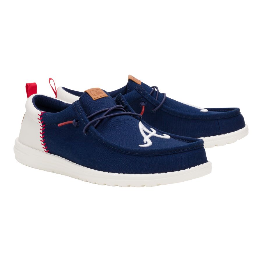 Show off your Braves pride with standout embroidery and baseball-inspired details. Designed with a textured. stitched heel and a green footbed. these shoes bring big-league style.
